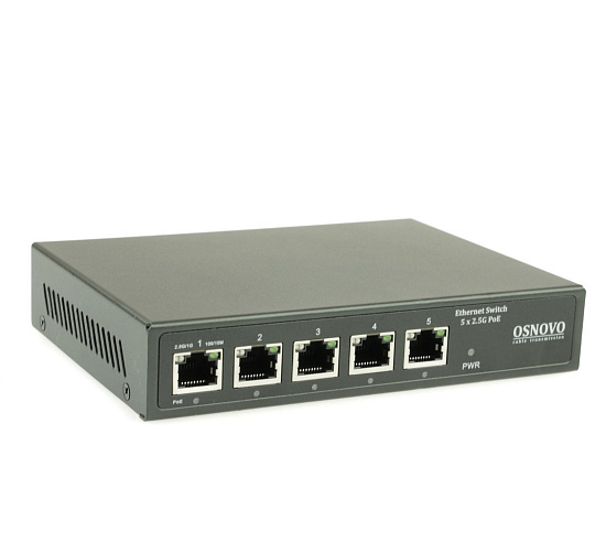 SW-5D-1(60W) PoE коммутатор 2.5G Ethernet на 5 RJ45 портов. Порты: 1 x 2.5G (10/100/1000/2500Base-TX) с PoE (до 60W, A+B) + 3 x 2.5G (10/100/1000/2500Base-TX) с PoE (до 30W), 1 x 2.5G (10/100/1000/2500Base-T). Соответствует стандартам PoE IEEE 802.3af/at/bt....