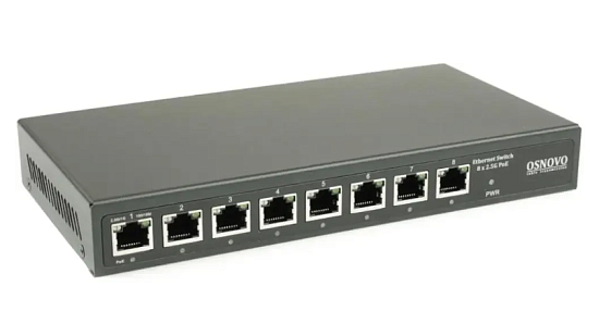 SW-8D-1 Коммутатор 2.5G Ethernet на 8 RJ45 портов. Порты: 8 x 2.5G (10/100/1000/2500Base-TX). Изоляция портов (VLAN). Auto MDI/MDIX. Встроенная грозозащита 3кВ. В комплекте БП DC12V(2A). Размеры (ШхВхГ): 223x28x113мм. Рабочая температура: -10...+55 гр. С.