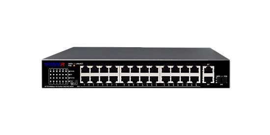Неуправляемый РоЕ-коммутатор TRASSIR TR-NS1126-225-24PoE оснащен двадцатью четырьмя РоЕ-портами RJ-45 Fast Ethernet, Uplink-портом RJ-45 Gigabit Ethernet, combo-портом с SFP-слотом Gigabit Ethernet. Поддерживает стандарты IEEE802.3af, IEEE802.3at.