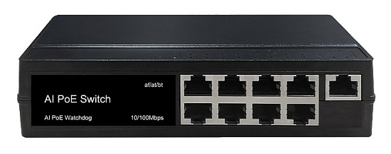 Tantos TS-S1109 - 9 портовый неуправляемый PoE коммутатор, 8x100 Мбит/с PoE портов (6 портов 802.3af/at, максимальная мощность PoE 30 Вт на порт, 2 порта 802.3af/at/bt, максимальная мощность PoE 60 Вт на порт) + 100 Мбит/с порт Uplink....