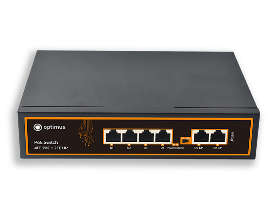 Optimus U1E-4F/2F (12-24V) - 4 порта 10/100 Мбит/с RJ-45, PoE+, 2 порта 10/100 Мбит/с RJ-45, Uplink, Бюджет до 100 Вт, Стандартный режим работы коммутатора. Есть Watchdog.Питание коммутатора: 4-ячеечная клемма, DC 12-24В, Рабочая температура: от -30°C до 50°C Относительная влажность: от 10% до 90% (без конденсата), Размеры: 204х144х44 мм, Вес: 0,7 кг