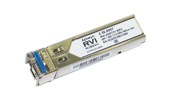 RVI RVi-2NST21-BX3 - Форм-фактор: SFP; Скорость передачи данных: 1.25 Гбит/с; Дальность передачи данных: 3 км; Тип разъёма: Simplex LC (одноволоконный); Тип кабеля: Оптоволоконный кабель; Тип передатчика: Одномодовый...