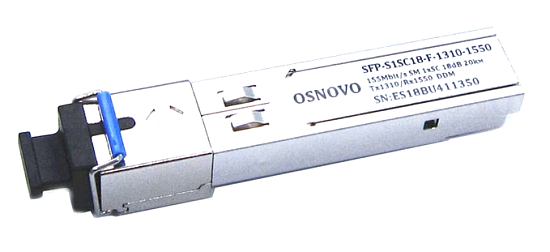 SFP-S1SC18-F-1310-1550 SFP Модуль промышленный Tx:1550/Rx:1310, одноволоконный, 155 Мбит/с, SM, SC, 20 км; поддержка DDM, -40 …+85 °С.