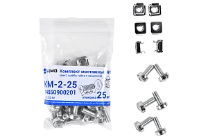 Описание: ЦМО КМ-2-25 - Комплект монтажный № 2 (винт, шайба, гайка с защелкой), упаковка 25 шт.