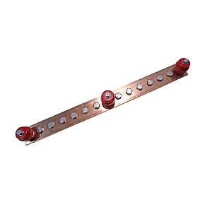 Описание: Cabeus CGB-ГЗШ-5.50-12 (11637c) - Главная шина заземления медная (CGB-ГЗШ) 5х50 мм, 12 подключений, 520 мм, три изолятора SM-40, нержавеющий крепеж М10 ток 860 А