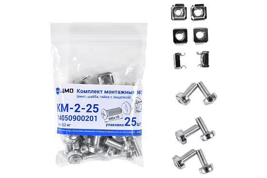 ЦМО КМ-2-25 - Комплект монтажный № 2 (винт, шайба, гайка с защелкой), упаковка 25 шт.