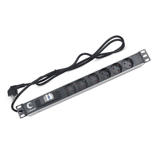Cabeus PDU-6P-B-2EU (7292c) - Блок евророзеток для 19" шкафов, горизонтальный, 6 розеток, автомат защиты 16 A , шнур 2м, алюминиевый корпус, немецкий стандарт