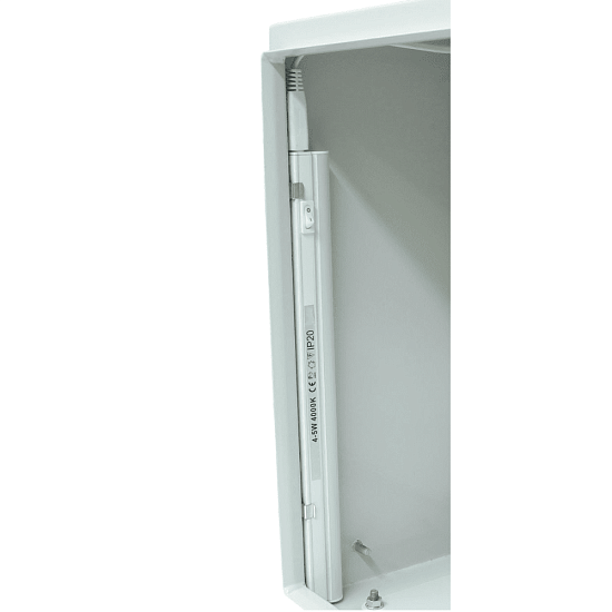 Светильник для уличных станций Светильник для уличных станций OSNOVO. Подходит для всех моделей с шириной шкафа от 400мм. Энергосберегающие светодиоды. Низкое энергопотребление не более 5W. Питание AC220V (встроенный БП). Повышенная устойчивость к перепадам напряжения. Наработка на отказ 30000ч. С выключателем. Предназначен для установки в уличные станции OSNOVO. Размеры (ШхВхГ): 22x313x30мм. Рабочая температура: -20…+45°С.