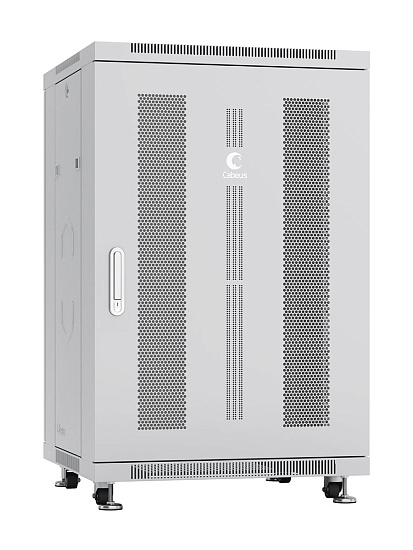 Cabeus ND-05C-18U60/60 (7656c) - Шкаф монтажный телекоммуникационный 19" напольный для распределительного и серверного оборудования 18U 600x600x988mm (ШхГхВ) передняя и задняя перфорированные двери, ручка с замком, цвет серый (RAL 7035)