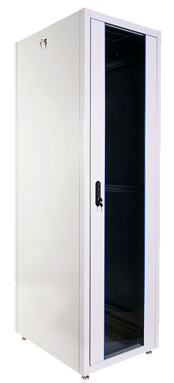 Шкаф относится к серии ЦМО ШТК-Э, выполнен в сером цвете и имеет напольное исполнение. Разборная конструкция облегчает транспортировку и монтаж оборудования, а также упрощает обслуживание сетевой инфраструктуры.