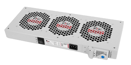 Rem R-FAN-3T - Модуль вентиляторный, 3 вентилятора с терморегулятором, U-ном. 230 В, P-потр. 30 Вт, размеры (ВхШхГ) 45х432х195 мм, цвет серый RAL 7035