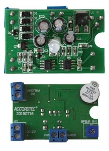Описание: AccordTec Плата ML-194 - Электронная плата управления электромагнитным замком, время открывания от 1-15 сек, тип кнопки НО, схема перемагничивания, световая и звуковая индикация, управление питанием, 12V AC/DC, 0.05 A. кг., габаритные размеры 50x33x25 мм. Темп.диапазон -30°С…+50°С