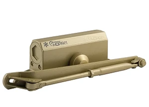 Описание: Нора-М №3S-F бол (золото) - Доводчик дверной, удлиненный рычаг, 50-80кг, 186х44х298 мм, -45..+60°С, с фиксацией в открытом состоянии