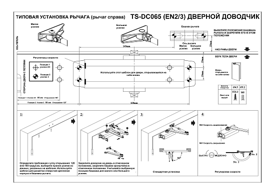 Tantos TS-DC065 графит - Доводчик дверной с усилием EN3 для дверей весом до 75 кг и шириной дверного полотна до 950 мм.