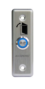 Описание: AccordTec AT-H801А LED - Кнопка "Выход" врезная c LED подсветкой. Ток потребления до 10 мА в диапазоне напряжения от 3-х до 15-ти вольт. Полярность при подключении подсветки значения не имеет.Цвет подсветки синий. Тип крепления: врезная Габариты: 90х30 мм
