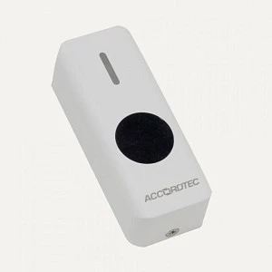 Описание: AccordTec AT-H810P-W Бесконтактная накладная кнопка выхода с регулировкой дальности срабатывания от 7 до 15 см и задержки на выключение, НО/НЗ, питание 12/24 В. Коммутация 2 А, 24 В; Материал: пластик. Дежурная индикация синяя, при срабатывании - зеленая. Герметизированная плата (после регулировки рекомендуется дополнительная герметизация разъема и регуляторов). Рабочая температура: -20°С+55°С. Габариты: 80 х 32 х 23 мм; Масса брутто: 60г