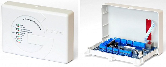 RusGuard ACS-102-CE-S - Сетевой контроллер, 64 000 ключей, 60 000 событий, интерфейсы считывателей Touch Memory, Wiegand, интерфейс связи с сервером Ethernet, CAN-HS, 8 выходных ключей, 4 канала питания нагрузки, 2 охранных шлейфа, 0…+50 °С, пластиковый корпус, БЕЗ блока питания