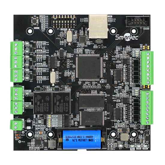 Smartec ST-NC221R2 - Сетевой контроллер на 2 двери, 2 порта считывателей, 6 входов, 2 выхода, 10000 пользователей, 10000 событий, работа под управлением ПО Timex 23.2.0 и выше, TCP/IP, Wiegand 26 и 34. Без бокса.