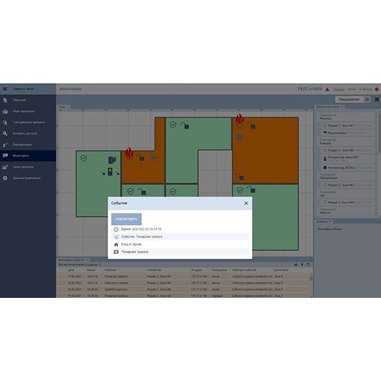 Интеграция системы PERCo-Web с оборудованием ИСО «Орион» осуществляется с помощью прибора преобразователя протокола С2000-ПП производства «Болид» по открытому коммуникационному протоколу Modbus RTU.