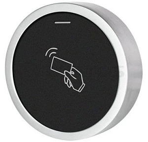 Описание: Tantos TS-RDR-E Rondo - Считыватель карт формата Em-marin в корпусе из цинкового сплава и пластика, выходной протокол Wiegand-26, питание 9-18В, 25мА, размеры Æ 73 х 20 мм, IP66, -40... +60С.