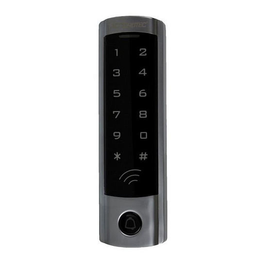 AccordTec AT-CP410MF - Кодовая панель со встроенным считывателем карт Mifare, питание DC 12V, антивандальный корпус,подсветка кнопок.Рабочая температура:- 45°С~+ 60°С , 155x42x22 мм, Масса брутто 390 г.