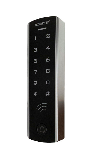 AccordTec AT-CP420EM Кодовая панель со встроенным считывателем карт EM-Marine, питание DC 12V, антивандальный корпус,подсветка кнопок.Рабочая температура: - 45°С~+ 60°С, 155x42x22 мм, Масса брутто 397 г.