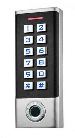 AccordTec AT-FR100EM - Кодонаборная панель с биометрическим считывателем отпечатков пальцев, со встроенным считывателем карт, питание DC 12-24V, корпус - металл+пластик, пылевлагозащищенный Проход по карте, коду,...