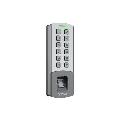 Dahua DHI-ASI1212M - Влагозащищенный автономный RFID-считыватель с клавиатурой Отпечатков пальцев: 3000 10000 карт, 10000 паролей и 100000 записей; Поддерживает открытие через сканирование отпечатка пальца, IC карту (Mifare (13.56MHz)), пароль и их комбинации; Интерфейс считывателя Wiegand, RS-485; P2P подключение; TCP/IP протокол; IP65, IK08; Питание DC12V.