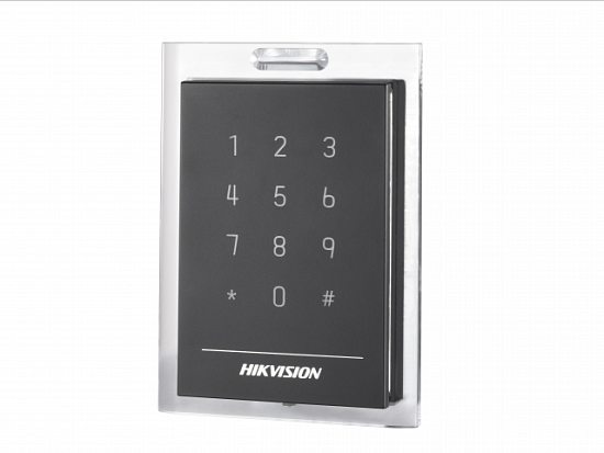 Hikvision DS-K1101MK - Считыватель Mifare карт с сенсорной клавиатурой, Частота считывания 13.56МГц; дальность считывания: 30-50 мм; поддержка протоколов RS485 и Wiegand (W26/W34); DC12В; 6Вт; -40 °C...+70°C; IP64; размер 132×92.3×20.5мм; пластик.