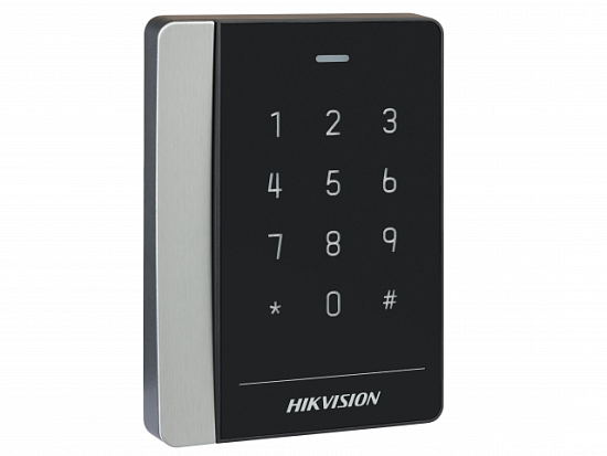 Hikvision DS-K1102AEK - Считыватель Mifare карт с сенсорной клавиатурой Частота считывания 13.56МГц; дальность считывания: 30-50 мм; поддержка протоколов RS485 и Wiegand (W26/W34); DC12В; 6Вт; -40 °C...+70°C; IP64; размер 121×86.5×14мм; пластик.