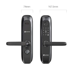 Описание: Ezviz CS-L2S-11FCP (A0)(BLACK) - Электронный замок с ручкой врезного типа и полуавтоматической системой запирания. Оснащен встроенным биометрическим сканером отпечатка пальца расположенным на корпусе. Открывается с помощью отпечатков пальцев (до 50 шт), паролей (до 50 шт), карт (до 50 шт). Работает от 4-х батареек АА (в комплекте). Есть аварийный механический ключ. Врезная часть оснащена тремя ригелями, корпус выполнен в черном цвете. Рекомендуемая толщина двери от 40 до 110мм. Габаритные размеры: внешняя чать 307 x 74 x 32 мм *Интеграция с APP EZVIZ с возможностью генерации временных паролей