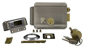 Описание: Falcon Eye FE-2369 - Накладной электромеханический замок (хромированный), универсальный, цилиндр + три ключа, блокируемая кнопка выхода. Сила удержания до 500 кг. Напряжение: 12В, потребление: 3-4А. Габариты: 127х105х40 мм.