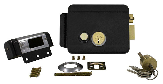 AccordTec AT-EL101B - Электромеханический замок, накладной, универсальный (дверь наружу, внутрь), ролик взвода пружины, блокировка ключом в закрытом состоянии, сталь,цвет черный, 12В. Габаритные размеры:128x38x104 мм. Масса брутто: 1300 г.