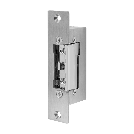 DL1SP NC Novicam v.4510 - электромеханическая защёлка с короткой планкой; Н.З. - разблокировка подачей питания или механически; сила удержания 4000Н; DC 12В