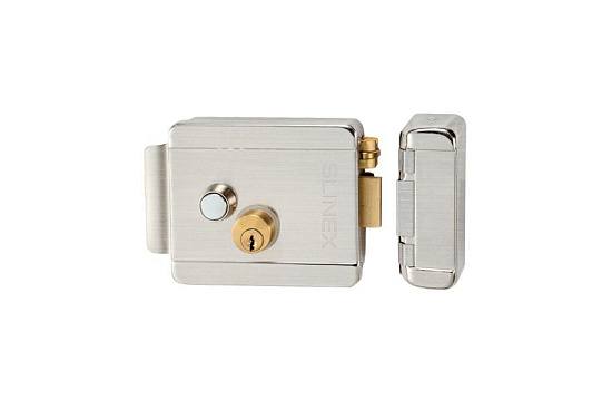 Slinex EL-02 - Электромеханический накладной замок, нормально закрытый, цилиндр двойной, механическая кнопка выхода на корпусе, блокировка кнопки, материал - сталь с нержавеющим покрытием, питание 9-14 В,...