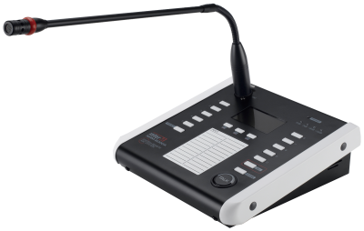 Микрофонная панель оснащена кнопками управления для выбора канала трансляции, OLED дисплеем, кнопками навигации по меню и подтверждения выбранных настроек, кнопкой начала вещания и кнопкой подачи сигнала привлечения внимания. Трансляция сигнала привлечения внимания может осуществляться автоматически перед речевым сообщением и после него, в зависимости от настроек консоли.
