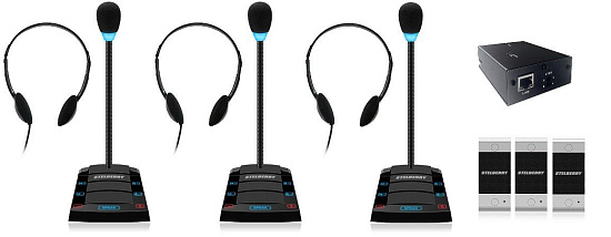 STELBERRY SX-411/3 - комплекс аппаратуры клиент-кассир с режимом «симплекс», наушниками и системой регистрации разговоров. Состав: 4-канальный аудиорегистратор Sprut SR-500/4 + 3 переговорных устройства STELBERRY S-411 + комплект для коммутации.