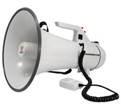 Inter-M AT-M140BCA - мощная портативная сирена-мегафон с питанием от 8 батарей типа 'C' (12 В) или внешнего адаптера (10-13,8 В). Номинальная мощность 25 Вт, максимальная - 40 Вт. Габариты Ø300×443 мм, вес 2,64 кг. Дальность оповещения: 110 м в городе, 350 м на открытой местности. Работает до 5 часов от батарей, имеет линейный аудиовход и встроенный генератор сирены.