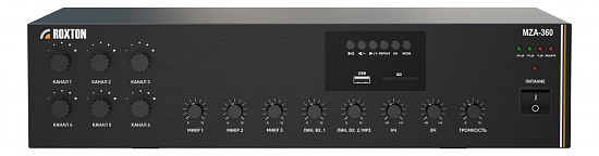 Roxton MZA-360 - МР3-плеер-USB-SD-FM-тюнер-усилитель 360 Вт, 3 микр./2 лин. входа, ИК-пульт ДУ, 6 зон