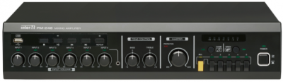 Цифровой микшер-усилитель PM-248 со встроенным USB-проигрывателем предназначен для построения систем речевого оповещения и музыкальной трансляции. Он позволяет смешивать и усиливать сигналы микрофонного и линейного уровней от различных источников звука и распределять усиленный сигнал по пяти зонам трансляции. Микшер-усилитель оснащен разъёмом для подключения удаленной микрофонной панели RM-05A, которая позволяет осуществлять речевое оповещение в выбранные зоны, группу зон или все зоны одновременно. Для подключения источников звука в микшер-усилителе предусмотрено 3 универсальных и 5 линейных входов. Универсальные входы позволяют подключать источники сигналов микрофонного и линейного уровней, для конденсаторных микрофонов предусмотрено фантомное питание. Для подключения различных мобильных источников звука, например, смартфонов, MP3-плееров или ноутбуков, микшер-усилитель оснащен стереоразъемом 3,5-мм., удобно расположенным на передней панели усилителя. Микшер-усилитель имеет встроенные источники сигналов 'ГОНГ' и 'Сирена', запуск которых осуществляется с помощью кнопок, расположенных на передней панели. Кроме этого, запуск сигнала 'ГОНГ' может осуществляться удаленно. Порядок приоритетов: 1. TEL IN; 2. RM-05A, INPUT 1-2, 'СИРЕНА', 'ГОНГ'; 3. INPUT 3-6, EXT IN.; Питание микшер-усилителя осуществляется от сети 230 В 50 Гц.