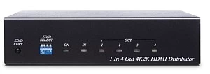 Описание: HD04-4K6G Разветвитель сигнала HDMI (1 вход/4 выхода). Максимальное разрешение 4K(60Гц). Поддержка HDMI 2.0, HDCP 1.4, 2.2, DVI 1.0. Вх. - HDMI(A)/RS232(DB9)/Роз.2,1х5мм(DC5V). Вых. - HDMI(A)x4. В комплекте БП DC5V(2А). Вес: 0,46кг. Размеры (ШxВxГ): 167x40x100,5 мм. Рабочая температура 0…+60°С.
