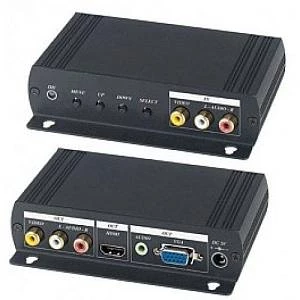 Описание: SC&T AD001HH - Преобразователь аудио и композитного видеосигнала в VGA и HDMI. Входы - композитный видео и стереоаудио. Выходы - композитный видео и стереоаудио, VGA, HDMI. Разрешение VGA -до 1920x1080, HDMI -до 1080p. OSD меню. БП 220/5В, 1А(DC) в комплекте. Размеры (ШxВxГ): 140х32х97мм. Рабочая температура -40...+55°C.