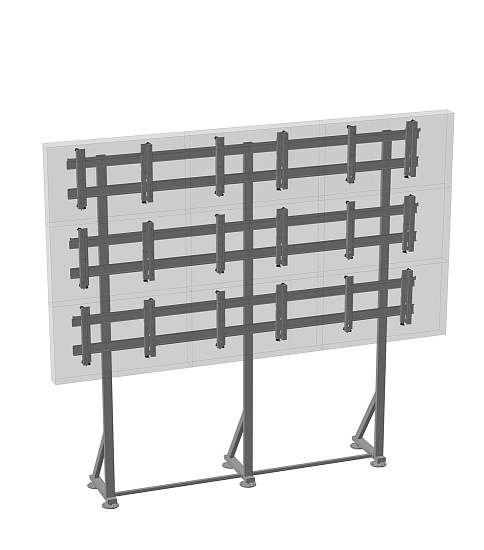 LB-33FT Кронштейн напольный 3х3 с откидными креплениями. Максимальная нагрузка 9х70кг. Обратный наклон для подключения +25°.Регулировка по вертикали: 0~50мм. VESA: 200x200, 200x300, 300x200, 300x300, 300x400, 400x200, 400x300, 400х400, 600x400 мм. Размеры (ШxВxГ):3600х2600х900мм.Вес:190 кг.