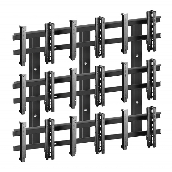 LB-33WT Кронштейн настенный 3х3 с откидными креплениями. Максимальная нагрузка 9х70кг. Обратный наклон для подключения +25°.Регулировка по вертикали: 0~50мм.VESA: 200x200, 200x300, 300x200, 300x300, 300x400, 400x200, 400x300, 400х400, 600x400мм.Размеры (ШxВxГ):1800х1600х100мм.Вес: 73 кг.
