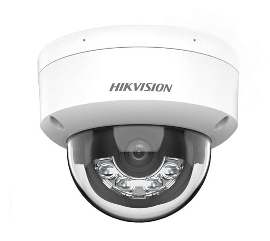 Hikvision DS-2CD2143G2-LIS2U(4mm) - 4Мп уличная купольная IP-камера с гибридной Smart подсветкой до 30м и технологией SharpSense 1/2.9" Progressive Scan CMOS; объектив 4мм; угол обзора 84°; механический ИК-фильтр; 0.005лк@F1.6; сжатие H.265/H.265+/H.264/H.264+/MJPEG; тройной поток; 2688 × 1520@25к/с; WDR 120дБ, 3D DNR, HLC, BLC, ROI; 2 встроенных микрофона; ИК-подсветка и подсветка белым светом до 30м; обнаружение движения, вторжения в область и пересечения линии; оставленные/унесенные предметы, классификация «человек/ТС»; слот для microSD до 512Гб; аудиовход/выход 1/1; тревожные вход/выход 1/1; защита от перенапряжений TVS, 1 RJ45 10M/100M Ethernet; DC12В± 25%/PoE(802.3af); 8.5Вт макс; -40 °C...+60 °C; IP67; IK10; вес 0.6кг.