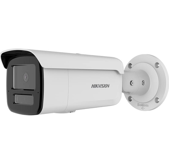 Hikvision DS-2CD2T83G2-2LI2U(2.8mm) - 8Мп уличная цилиндрическая IP-камера с EXIR-подсветкой до 60м и технологией AcuSense 1/2,8" Progressive Scan CMOS; объектив 2.8мм; угол обзора 107°; механический ИК-фильтр; 0.005лк@F1.6; сжатие H.265/H.265+/H.264/H.264+/MJPEG; тройной поток; 3840 × 2160@20к/с; WDR 120дБ, 3D DNR, BLC, HLC, ROI; обнаружение движения, вторжения в область и пересечения линии; классификация «человек/ТС»; слот для microSD до 256Гб; 1 RJ45 10M/100M Ethernet; DC12В± 25%/PoE(802.3af); 11Вт макс; -40 °C...+60 °C; IP67; вес 1.09кг.