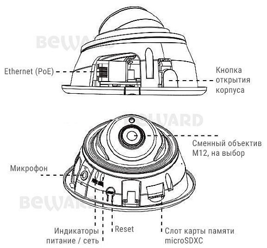 Beward SV2005DR (2,8 mm) - 2 Мп, 1/2.8" КМОП Sony Starvis, 0.002 лк (день)/0.001 лк (ночь), 2xWDR до 140 дБ, 3 потока H.265/Н.264 HP/MP/BP, MJPEG, 30к/с, объектив 2.8, электромеханический ИК-фильтр, ИК-подсветка (до 20м), PoE, microSDXC (до 256...