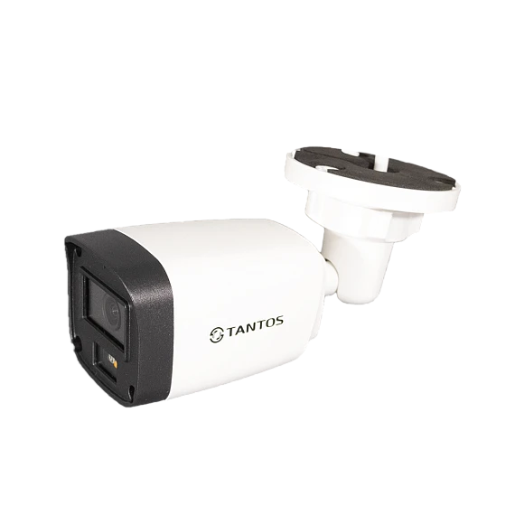 Tantos TSi-P5FP - IP видеокамера уличная цилиндрическая с умной двойной подсветкой, пятимегапиксельная 2960х1664х20к/с 1/2.7” CMOS сенсор c прогрессивным сканированием 0.006 Люкс (день) / 0.001 Люкс (ночь) / 0 Люкс (с подсветкой), объектив 2.8 мм, детектор движения, встроенная видеоаналитика, BLC, HLC, DWDR, DNR, Н.264+/H.265+, антитуман, e-mail, механический ИК фильтр, DC 12V, PoE, встроенный микрофон, герметичный разъем Ethernet, двойная подсветка (адаптивная ИК подсветка до 30м, белая управляемая подсветка до 30м), -40+60˚C.