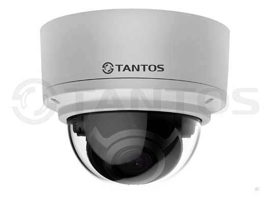 Tantos TSi-Ve50VPA - 5 мегапиксельная уличная купольная антивандальная камера с ИК подсветкой и микрофоном IP видеокамера купольная антивандальная с ИК подсветкой 5-мегапиксельная, 2592 × 1944, Н.264+/H.265+, 1/2.8” SONY STARVIS сенсор 0.01 Люкс (день) / 0.001 Люкс (ночь) / 0 Люкс (с ИК подсветкой), встроенная видеоаналитика, BLC, HLC, WDR, DWDR, 3DNR, ROI, антитуман, FTP, e-mail, моторизованный объектив 2.7-13.5 мм, механический ИК фильтр, встроенный микрофон, microSD до 128Гб, DC 12V, PoE, герметичный разъем Ethernet, адаптивная ИК подсветка до 35м, -40+50˚C.