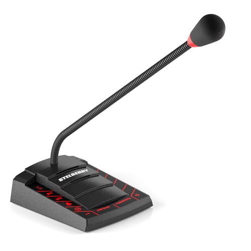 STELBERRY F-700 - Пульт громкого оповещения на 60 Ватт. 1 зона. Однонаправленный кардиоидный микрофон в гибкой стойке пульта. Аудиовход jack 3,5 mm для внешнего источника звука (музыки). Аудиовыход jack 3,5 mm для...